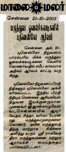 Malai Malar Newspaper – 21st October 2005